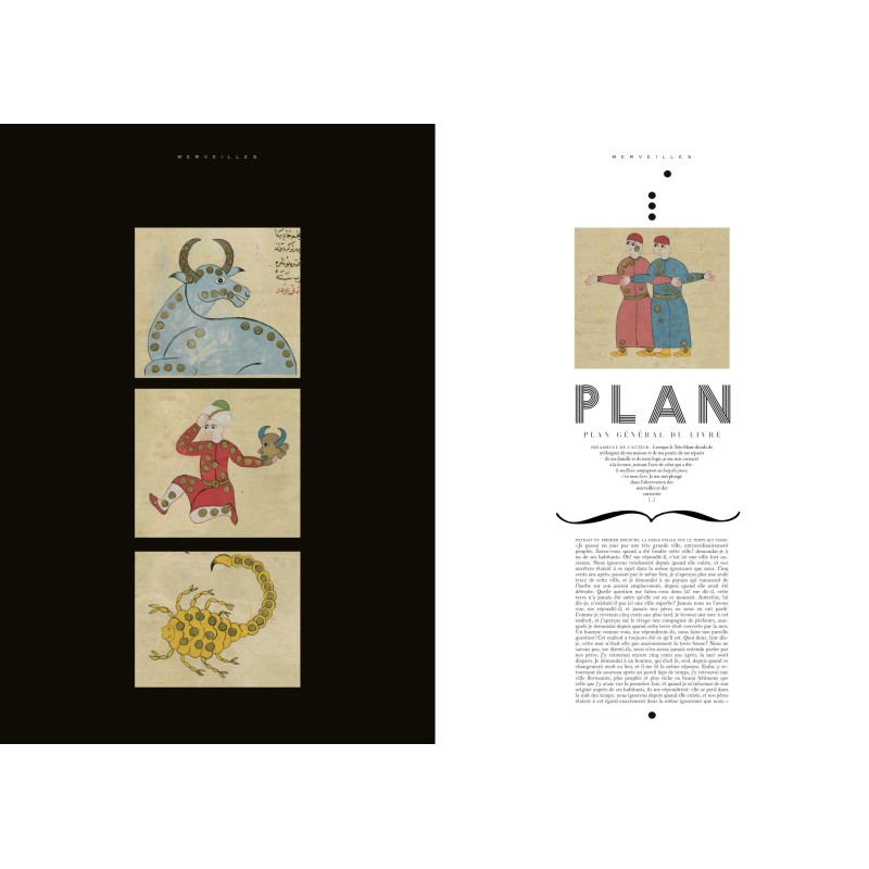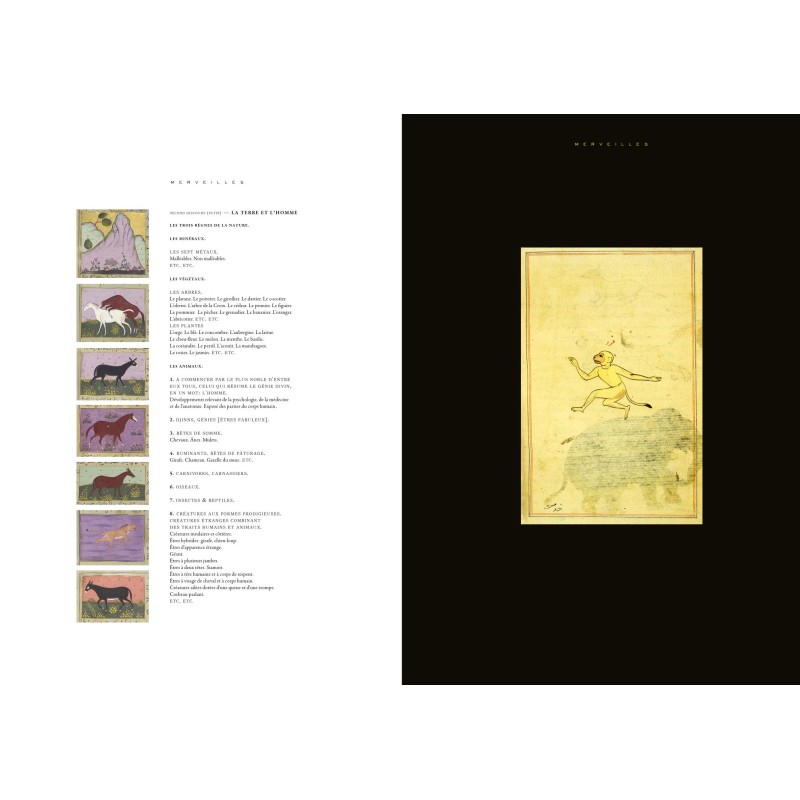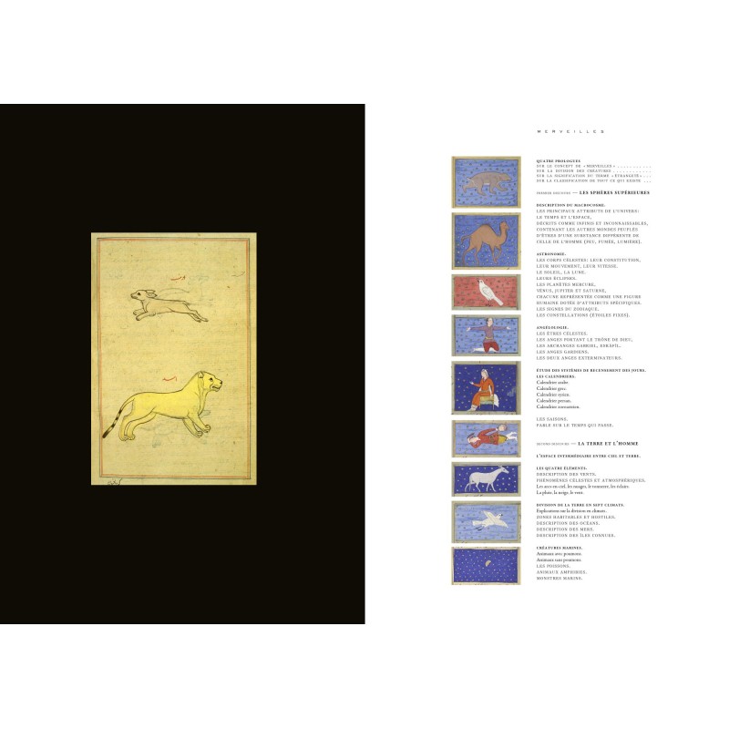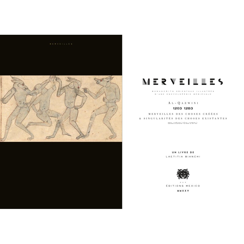SOUSCRIPTION //////// parution début novembre 2025 /////// MERVEILLES MANUSCRITS d'ORIENT //// Un livre d'art sur le Livre des Merveilles des choses créées & Singularités des choses existantes, ouvrage encyclopédique écrit en l'an 128o par Al-Qazwini, géographe et érudit. Un choix d'éblouissants manuscrits illustrés (arabes, persans, turcs), produits entre le XIIIe siècle et le XVIIIe siècle, avec des styles de peintures très différents. Constellations, animaux, démons, monstres, arbres... Une description du monde qui est aussi une réflexion sur les lisières du savoir, ce dont l'existence est certaine et ce dont on doute. De la girafe à l'ornithorynque en passant par le rhinocéros et le phénix, les hommes à tête de chien et les monstres en tout genre, une longue rêverie, un "livre conduit par l'image" dont parlait Nicolas Bouvier, qui est aussi un pas de côté vers les encyclopédies médiévales d'Orient, et leur lien avec les textes de l'Antiquité. ////////// La souscription donne droit à un exemplaire décoré en page de garde d'un tampon rouge de cynocéphale (homme à tête de loup). ////// Quatre images de couvertures possibles. N'hésitez pas à choisir la couverture voulue, en écrivant à redaction@editionsmexico.fr ou au moment de remplir la commande, en commentaires. ////// Le livre sortira en librairies le 1o novembre 2025.